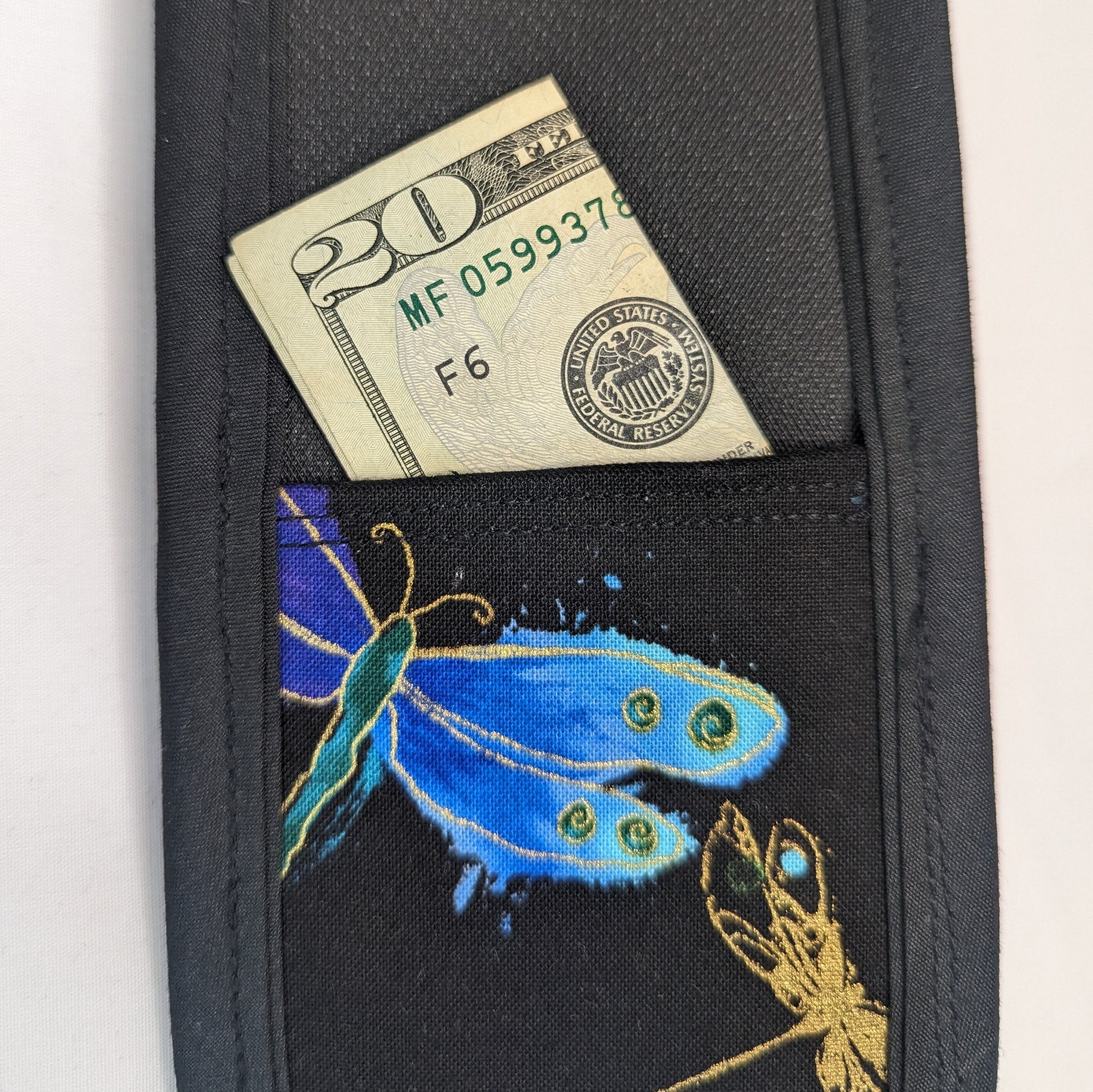 Showcase your style at work with a lotion holster that is also a statement piece! This single lotion holster holds a standard 8 oz lotion bottle and is made to last. This holster is made with black waterproof canvas throughout with quilting cotton fused to the pocket with double sided fusible interfacing to create a holster made for years of pump action, oil drips, and sliding from side to side.