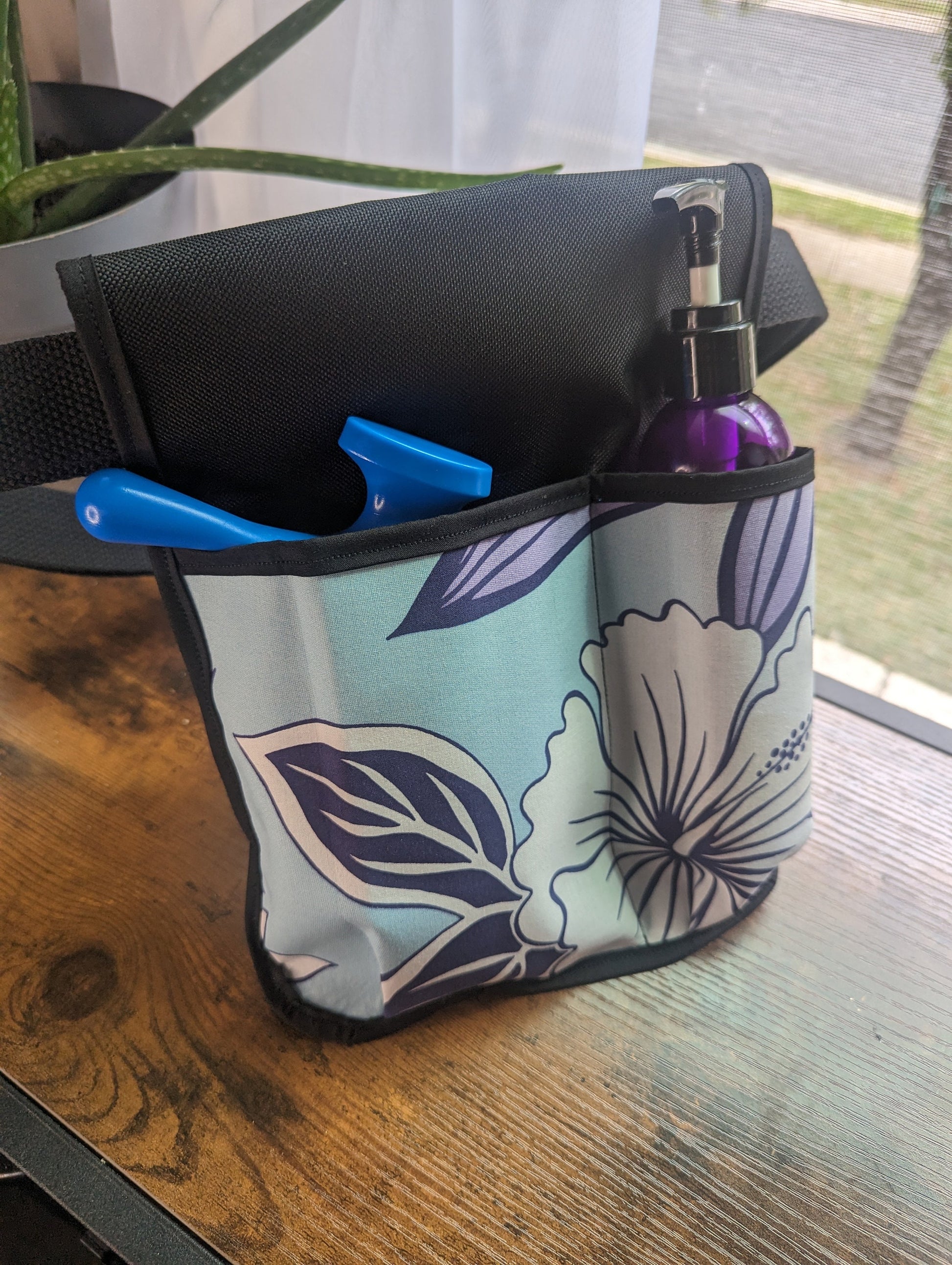 Do you do enough trigger point work that your thumbs need a break? These holsters are practical for holding tools and it showcases your style at work with a lotion holster that is also a statement piece! This lotion holster holds 1 standard 8 oz lotion bottle and is made to last. Each holster is made with black waterproof canvas throughout with quilting cotton fused to the pocket with double sided fusible interfacing to create a machine washable holster made for years of pump action, oil drips, and sliding from side to side.